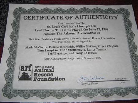 This has a Tony La Russa AFR COA, it's the real deal.