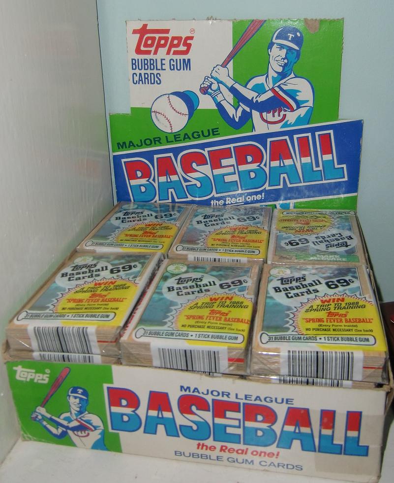 Two boxes of cello packs. Each box contains 24 packs and Mark's rookie card is on top of each pack.